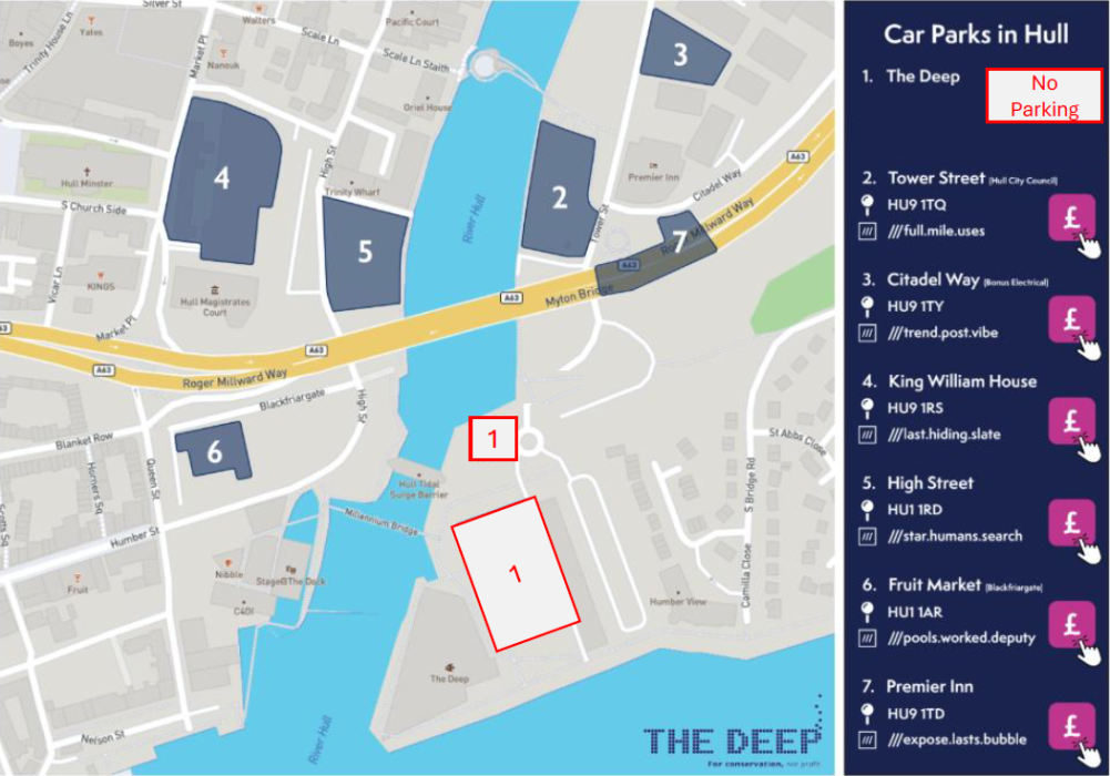 Please note there is STRICTLY NO PARKING in any of the car parks at The Deep.