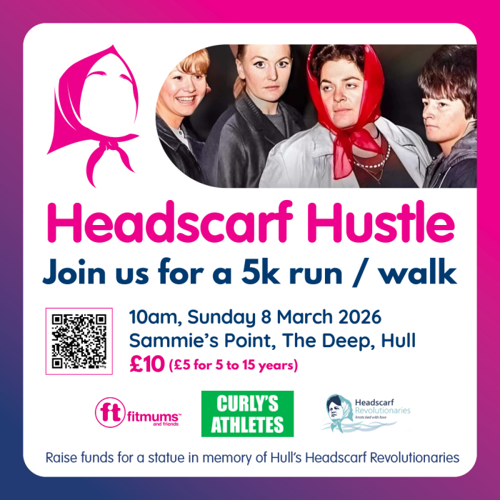 Hull’s riverside will come alive this International Women’s Day as people of all ages and abilities come together for the Headscarf Hustle – a powerful 5km run or walk along the Humber with a mission that goes far beyond fitness. Taking place on Saturday 8 March 10am (International Women’s Day), the Headscarf Hustle aims to raise the profile of the campaign to build a statue in Hull. This honours the Headscarf Revolutionaries – the remarkable women who changed fishing safety forever. Led by Lillian Bilocca, alongside her fellow campaigners, these Hull women stood up to injustice in the 1960s after the tragic loss of local fishermen. Their determination forced vital safety reforms in the fishing industry, saving countless lives and leaving a legacy that deserves permanent recognition in the city they called home.